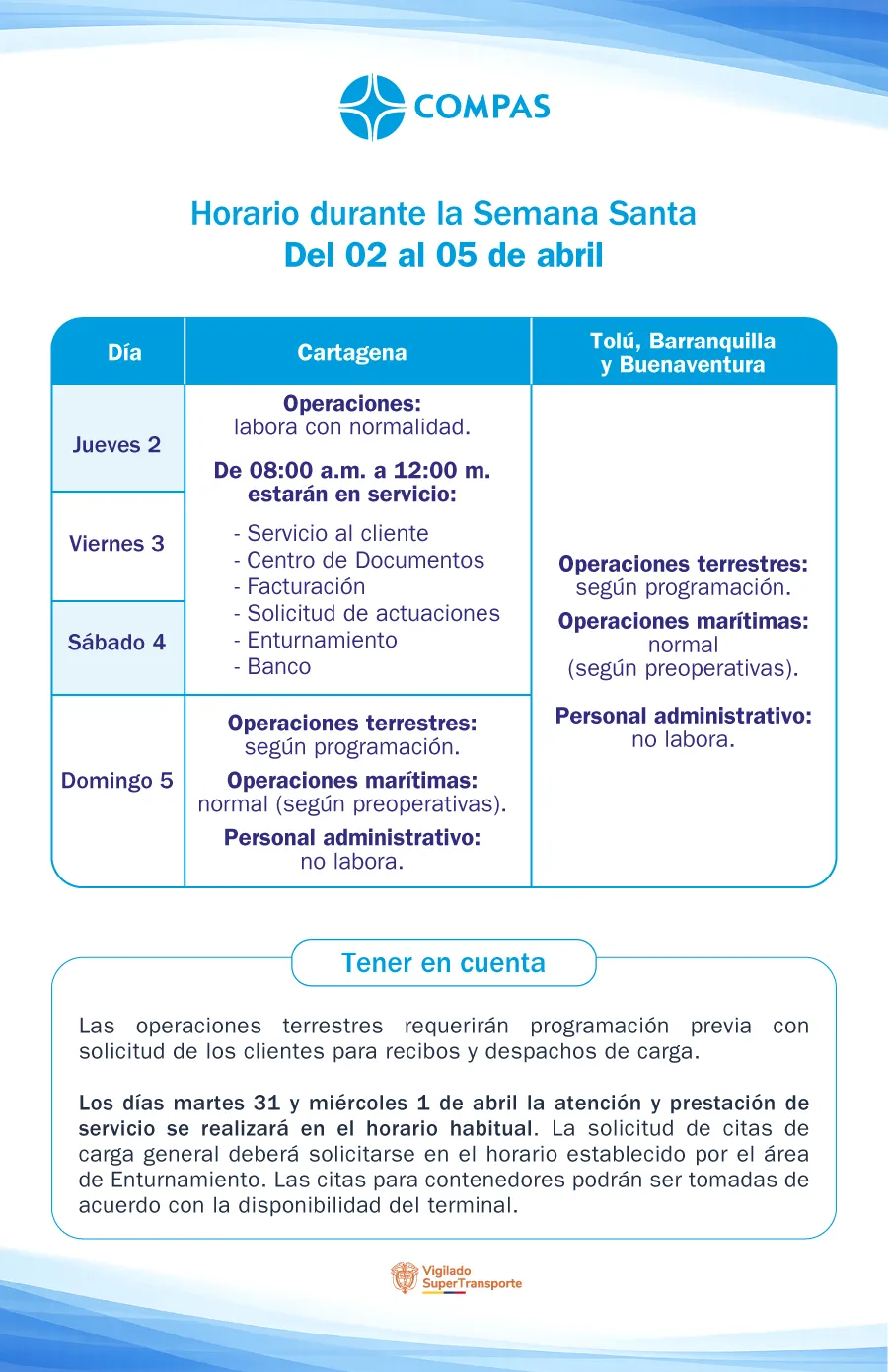 Horario de atención COMPAS Barranquilla durante el Carnaval